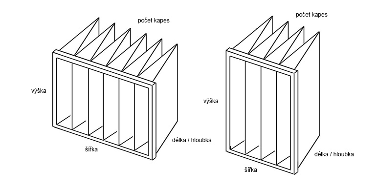Kapsové filtry se využívají jako předfiltry nebo druhé filtrační stupně. Jsou to nejrozšířenější filtry používané ve vzduchotechnikách např. pro filtraci v průmyslu chemickém, potravinářském, strojírenském, elektro průmyslu, v optice, nemocnicích, při výrobě léčiv, sportovních areálech, hypermarketech, v kancelářských budovách, hotelích a pod. Provedení rámu u standardně dodávaných filtrů je z plastového profilu těsněného speciální lištou nebo může být i z pozink plechu. Kapsové filtry jsou vyrobeny ze syntetického materiálu. Kapsy u filtrů tříd G3-M6 jsou z jednovrstvého netkaného materiálu s progresivní strukturou. Kapsy ve třídách F7-F9 mají ještě předfiltrační vrstvu, která prodlužuje životnost filtru. Životnost filtru se prodlouží i díky konstrukci kapsy, kdy je při filtrování využita celá plocha kapsy. Výměnu všech kapsových filtrů doporučujeme při dosažení tlakové ztráty 300 Pa. Pro výběr filtru je třeba znát třídu filtrace a rozměr rámečku, který se udává ve formátu: š x h x l/k (š – šířka, vodorovný rozměr, k kterému jsou kapsy kolmé; h – výška, svislý rozměr; l – délka, hloubka kapsy; k – počet kapes.